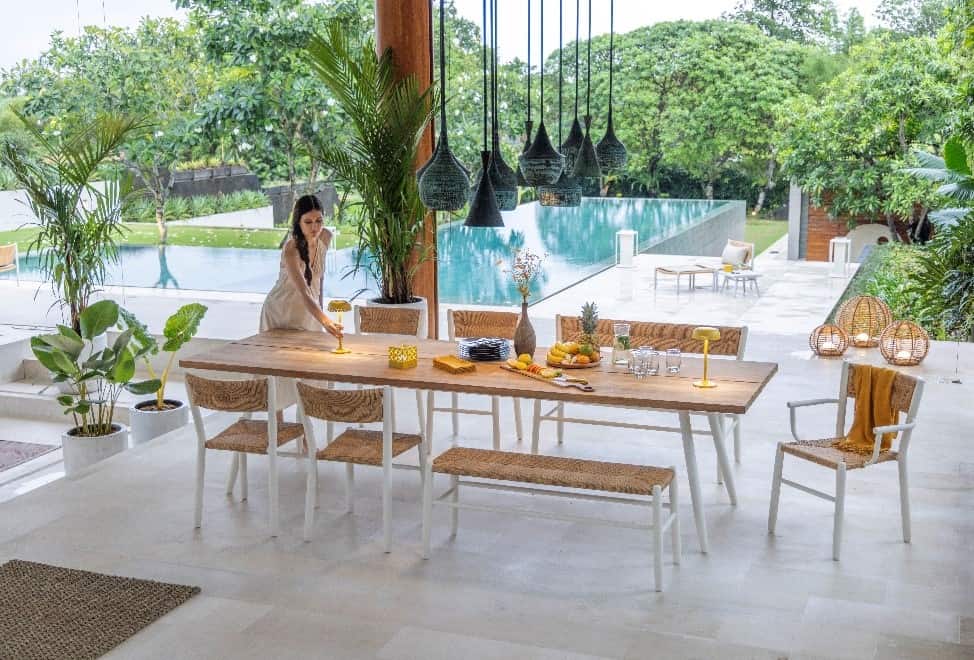 Entertaining outdoors has become an art form. From handcrafted teak dining sets to artisanal ceramics, every element contributes to a curated atmosphere. Neutral-toned, all-weather upholstery adds understated luxury, while thoughtful lighting and décor elevate the dining experience beyond the ordinary.