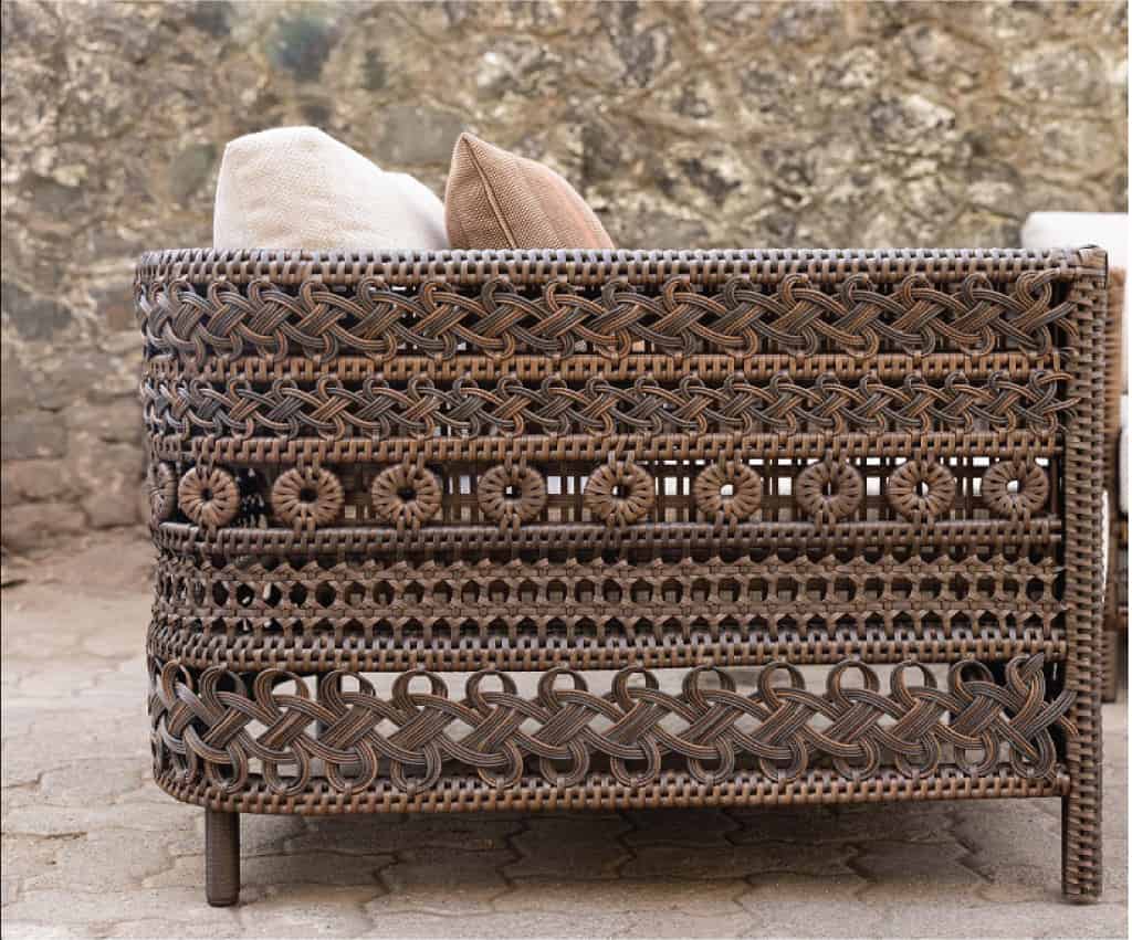 ABACA furniture is made of UV Synthetic polypeel/polyrope and polyrod woven on 1.2-2mm thick powder coated/painted aluminium framework.